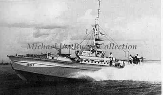 British Power Boat Motor Topedo Boat 451, was built originally as Motor Gunboat 132 at the British Power Boat Company’s Hythe (Southampton Water) yard. Whilst building she was re-classified as an MTB and given the number 451. She was completed on 5th November 1943, with three Packard petrol engines giving a B.H.P. of 3,600, and giving her a speed of 39 knots. She displaced 41 tons and her dimensions were 71feet 9 inches in length, 20 feet 9 inches in breadth and depth of 5 feet 9 inches. Armament consisted of one 2 pounder gun forward of the wheelhouse, two 20mm ( 1 x 2 ), four .303 inch ( machine guns) machine guns and two 18 inch torpedo tubes. She had a complement of 17 crew. MTB 451 was allocated to the 35th Motor Torpedo Boat Flotilla at Felixstowe where, in April 1944, the flotilla was moved to Newhaven. For the Normandy landing on 6th June 1944, her flotilla was temporarily allocated to the Portsmouth Command. She took part in the landing and subsequent operations in the English Channel. On 8th July, 1944, she was in action with an enemy force of E-boats about 19 miles east of Cap d’Antifer, in which she was damaged by shell fire and was out of action for a month. In September, 1944, MTB 451 returned to Felixstowe with her flotilla and was based there when the war in Europe ended in May 1945. (this information is by courtesy of the Historical Section at the Admiralty, and was given to me on 29th December 1959, whilst living in Australia). My late father was employed at British Power Boats, at their Poole yard, as Chief Storekeeper ( or chandler) and it was during this time that he bought a little book entitled "The Little Ships" written by Gordan Holman in 1943 about the Coastal Forces, and many of the photographs were of British Power Boat craft, with a few Vosper built MTBs also featured. It was whilst the company was winding down at the conclusion of hostilities that he saw the boat arrive at the yard, it was then transferred to a private yard, Bolson's Boatyard, closeby, where she was de-commissioned and put up for sale. Here she lay moored until purchased by my parents in 1947 to be transformed into a houseboat. In October 1947 she was towed to Lymington, in Hampshire, where she was moored at one of the Lymington Slipway’s moorings. One month later my parents and I left Poole and moved aboard MTB451 which was renamed later, and totally repainted a smart white with red water line and dark green anti-fouling. On the following two pages are reports, copied from official action reports of a night action in January 1945. |