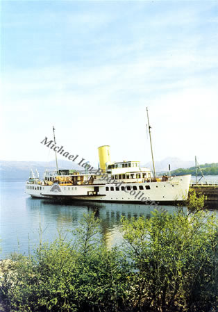 ![]() Menu for 5th June: This cover depicts one of the then remaining working Paddle Steamers, "Maid of the Loch" shown at Balloch on Loch Lomond. |