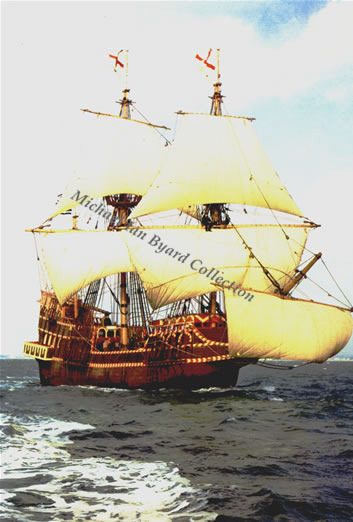 ![]() Dinner Menu for 11th June: Depicts replica of Drake's famous "Golden Hind" under full sail in the English Channel en-route to Plymouth in September 1974. |