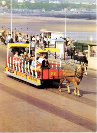 ![]() Dinner Menu for 12th June: Horse drawn tram, originally built and ran in 1876, shown operating on the Promenade at Douglas, Isle of Man. |