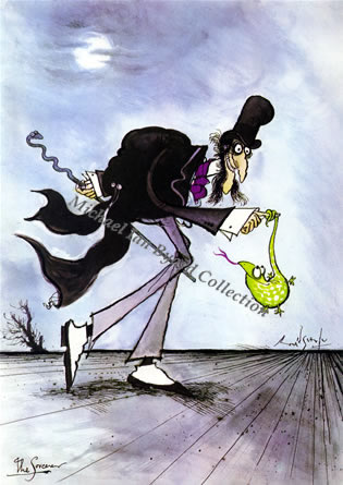 ![]() Dinner Menu for 16th June: A drawing by Ronald Searle depicting The Sourcerer for the animated feature film "Dick Deadeye |