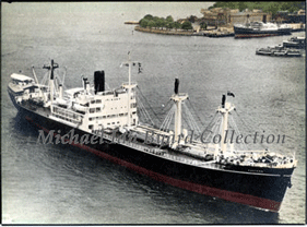Eastern and Australian Steamship Company Ltd., became a member of the P and O Group in 1946 and the running of E and A came under Macdonald, Hamilton and Co. The monthly reconciliation of the accounts (and that of AUSN) was one of the tasks for the Accounts Department Junior. Having never been taught, at school in England, anything about business principles and practice, trying to do this left me all at sea, in more senses than one, and I always had to seek the help of the 'goddess' of all the office juniors, Jeanette Starkey. She was the accounting machine operator and thanks to her I managed to scrape through, with additional, if not exasperated, help from Mr Hewitt who, at that time, looked after E and A as well as AUSN. A former colleague, John Hitches who worked in the Passenger Department, went to sea and became a cadet officer, and ultimately Purser, aboard the S.S. Nellore. It is through him and his good offices, and with my grateful thanks, that these photos and anecdotes of E and A life are included hopefully to be followed by others in due course. |