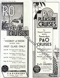 ![]() "Viceroy of India", "Strathnaver", "Strathaird", Mogolia and Moldavia Cruise Adverts 1934. |