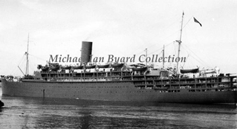 "Strathallan" was requisitioned for war service and took part in 'Operation Torch landings' but on 21st December 1942 she was hit by a torpedo fired from a German submarine and badly damaged. Fortunately only four people were killed, two engineer officers and two engine room crewmen. Although taken in tow by the "Laforey" heading for Oran, she caught fire and eventually turned over and sank, some 12 miles from Oran, on 22nd December 1943. |
