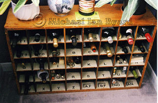 When I finally returned to England to live in March 1973 I went to Lymington and found her wrecked and falling to pieces being covered by water at high tide I did, however, manage to salvage a small portion of her engine room hull, which I cleaned and varnished. Some items we had used and taken with us to Australia in 1953. These were a brass cleat and her "Rum Box" (which was originally kept in the Wardroom) and "Flag Locker"( originally fastened to a bulkhead in the wheelhouse) complete with flag letters, which we brought back when we returned in 1973. The latter, as can be seen, is now used as a wine cellar, so something of the "Little Ship" survives, and in addition I have some details of her war career so that, very fond memories and these pages on my website, is something to remember her by and to share with others who are like minded! |